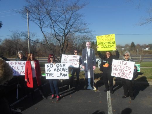 Steve Cickay, a Newtown resident who previously worked for the federal government, was also at the event outside Fitzpatrick’s office. He said “it continues to mystify me” that former FBI special agent Fitzpatrick has not supported the impeachment inquiry.