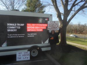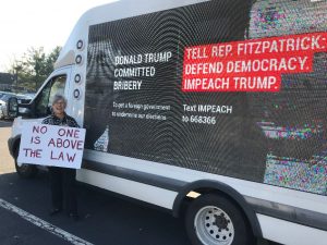 The billboard truck had the following message: “Donald Trump committed bribery – Tell Rep. Fitzpatrick: Defend democracy. Impeach Trump.”