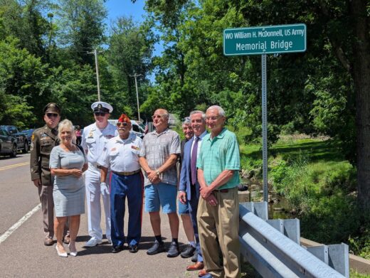 Commissioner Diane Ellis-Marseglia noted that McDonnell’s grave site in Newtown Cemetery is located near other Vietnam veterans honored through the bridge program, including one who was the co-pilot of her prisoner of war’s helicopter.