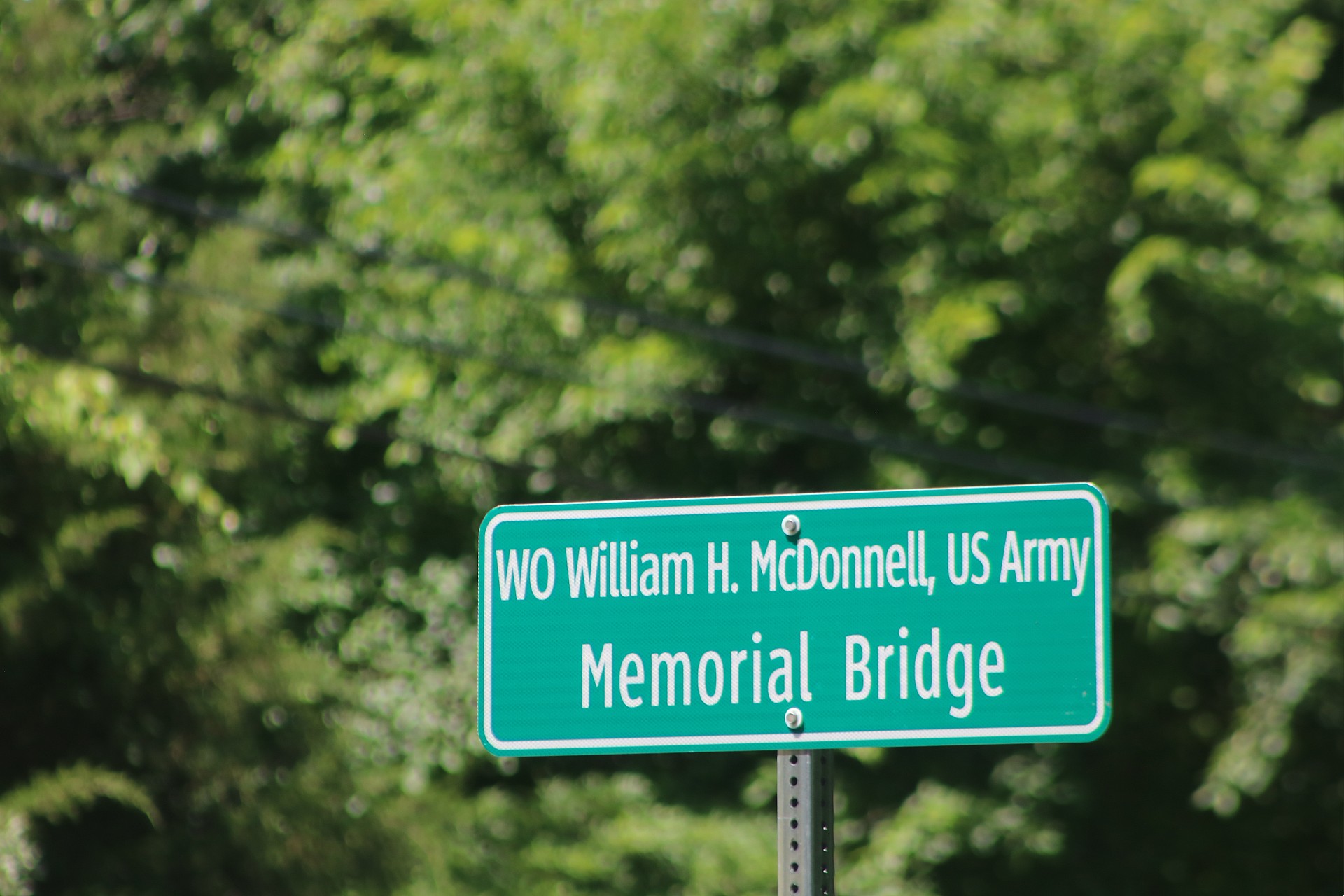 Bucks County dedicated Bridge 36 in Newtown Township on Tuesday in honor of U.S. Army Warrant Officer William Herbert McDonnell, a 19-year-old helicopter pilot killed in action during the Vietnam War.