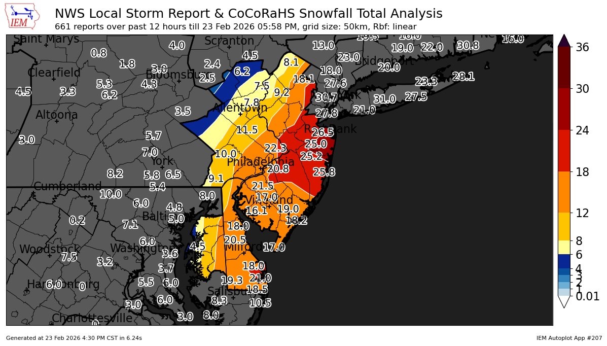 • Langhorne – 22.3 inches (NWS)