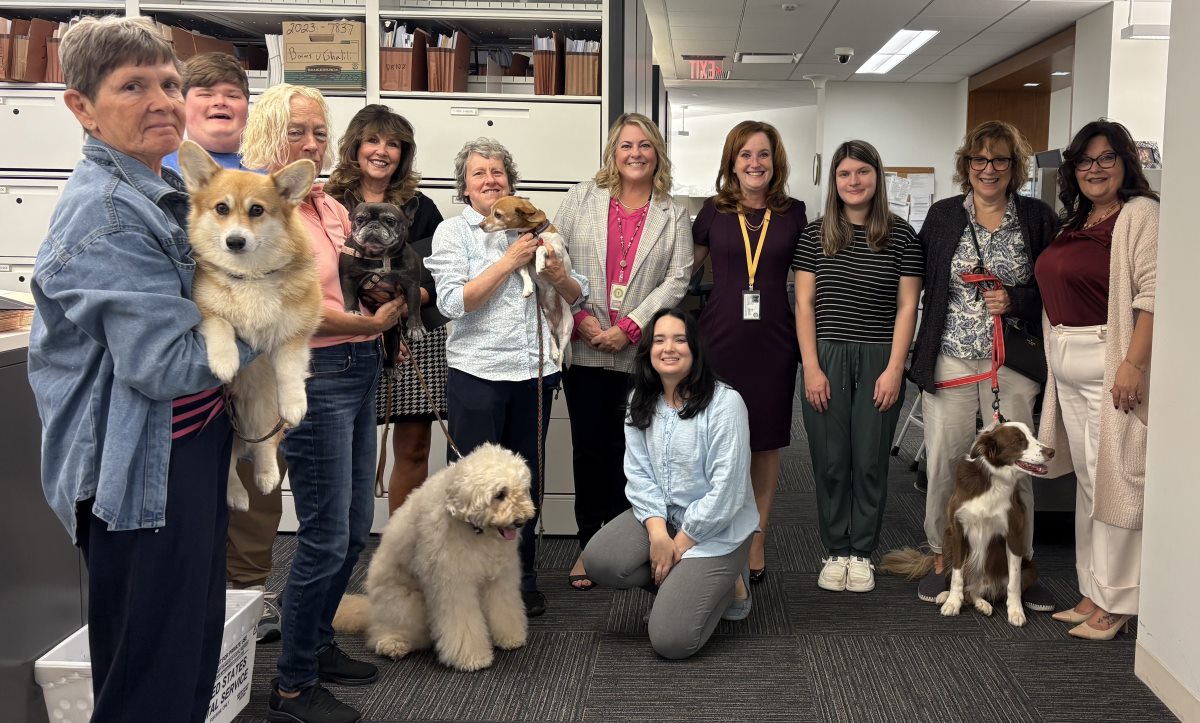 A team of therapy dogs and their owners volunteer weekly at PFA court to offer comfort to those in need. Five of the dogs—Maggie, Teagan, Edison (Eddie), Jax, and Nellie—and their handlers attended last week’s commissioners meeting.