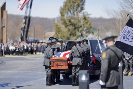The funeral service for Pennsylvania State Police Cpl. Timothy J. O’Connor Jr. was held at Saint Joseph Roman Catholic Church.