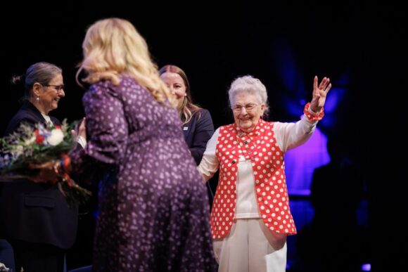 The event ended with a surprise visit from 100-year-old Mae Krier, a “Rosie the Riveter” from Bristol Township’s Levittown section.